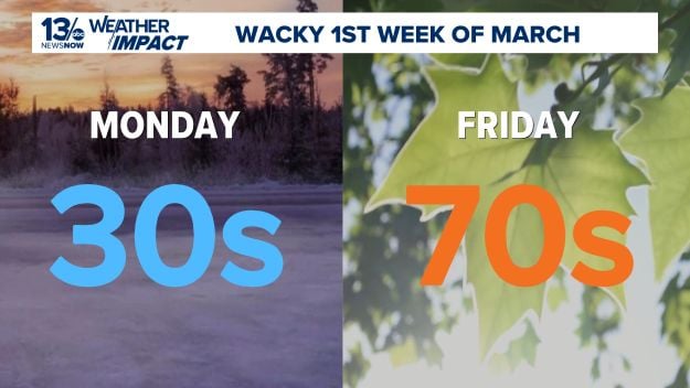 | Big temperature swings are in the forecast for the week ahead. (Image by 13News Now Chief Meteorologist Tim Pandajis) |