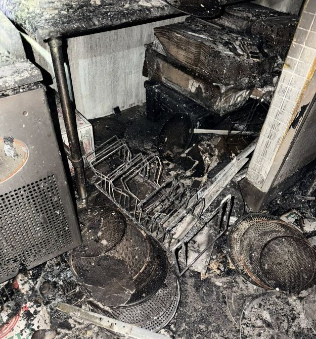 | A view of the kitchen at Highway Pizza following Monday's fire. (Photo by Highway Pizza via Facebook) |